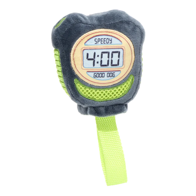 Clock your pup's zoomies and help them reach their pawsenel best! This Bark Crufts stopwatch dog toy is packed with fluff, crazy crinkle, and a squeaker, plus a woven tug strap for interactive play. Whether your pup’s sprinting, tugging, or training for greatness, this timer is always ready to start the fun.