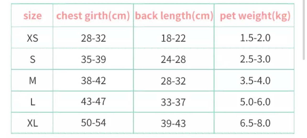 Make sure you measure your pet before purchase! We are specialised for small to medium breeds only! If you need size advise please feel free to contact us direct! facebook page- https://www.facebook.com/IsleForDogs/ our Instagram- https://www.instagram.com/isle4dogsboutique/ or by email: isle4dogs@gmail.com